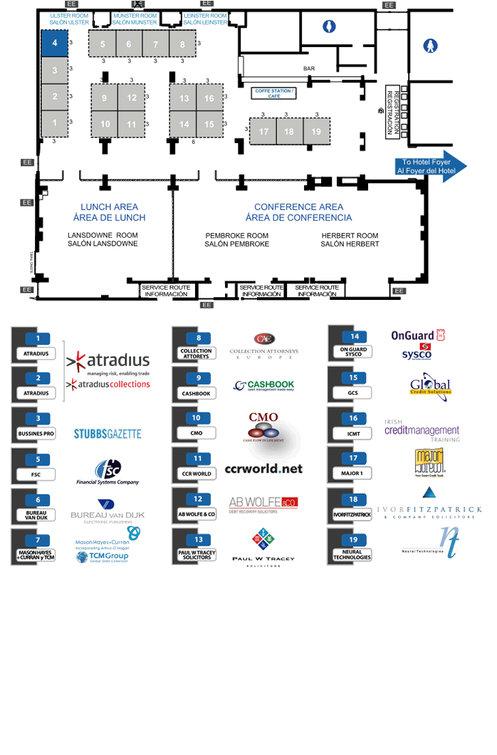 The World Credit Congress and Exhibition will take place in the Ulster, Munster and Leinster rooms and in the Foyer Area, directly outside the meeting and conference space in the Burlington Hotel.